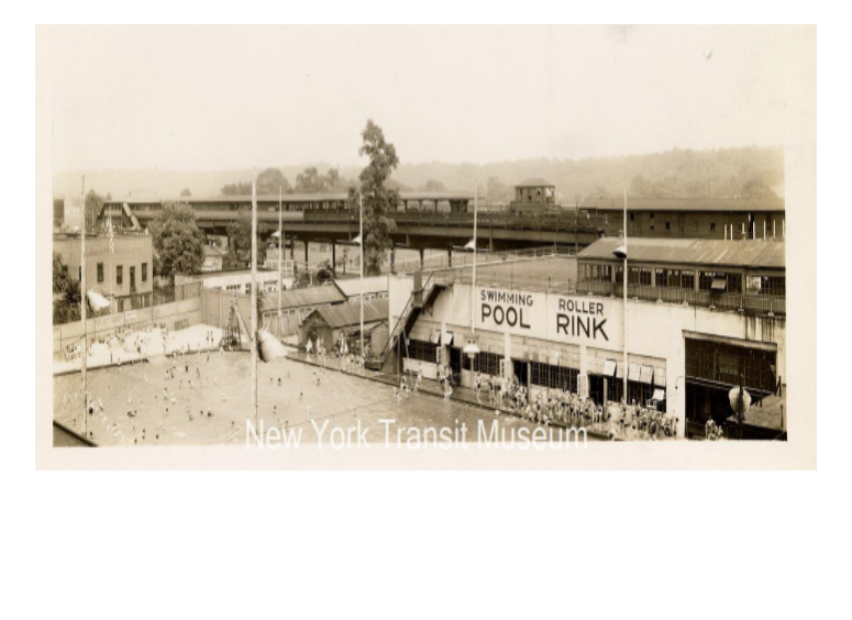 I was scanning through the N.Y. Transit Museum looking for photos of W242nd Street and came across this photo of the swimming pool and skating rink that I mentioned in my post #4308 above. The pool and rink supplanted the baseball field. The photo was probably taken from the catwalk that went from elevated train tracks to the repair barn. The photo is undated.