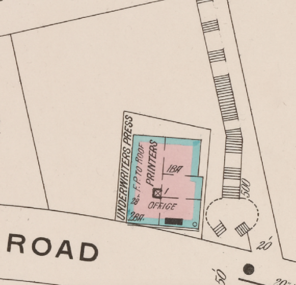 It was built to be a printing press.  The 1910 construction date in the city records might be accurate but The Underwriters Press set up business in the building in 1912: