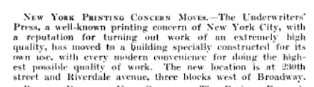 A 1922 issue of the Real Estate and Builders’ Guide shows the Underwriters Press selling property in our area to the “Estate of Isaac G Johnson.”  So, the Johnsons may have purchased it and used it as an office after its life as a printing press: