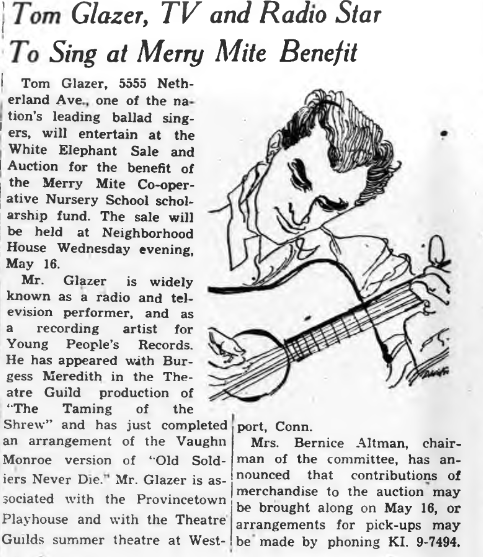 That would be Tom Glazer, onetime resident of 5555 Netherland Ave in Riverdale: