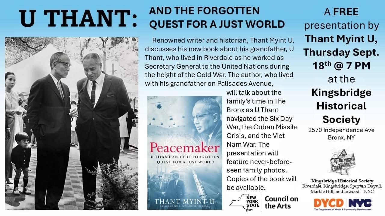 Join us on September 18 to learn more about the legacy of third Secretary General U Thant who lived with his family at the property now known as “Raoul Wallenberg Forest” during the years 1961 through 1971.