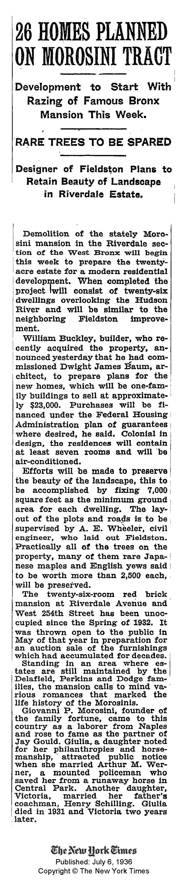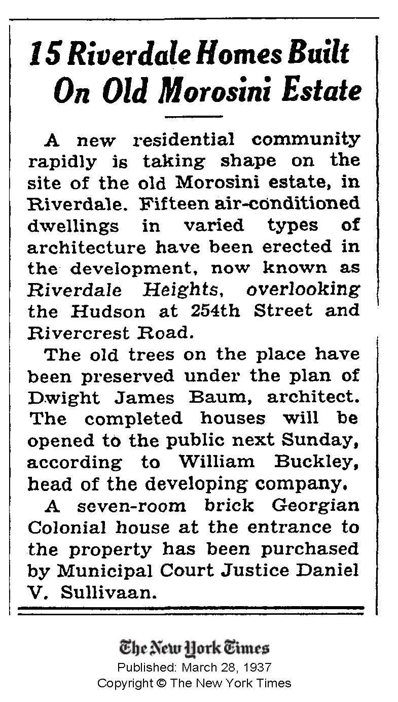 But the most important fact that I needed was the date and date range. This particular development was completed around 1937. And the NY Times had a few articles on it, which apparently was on the property of the former Morosini Estate.