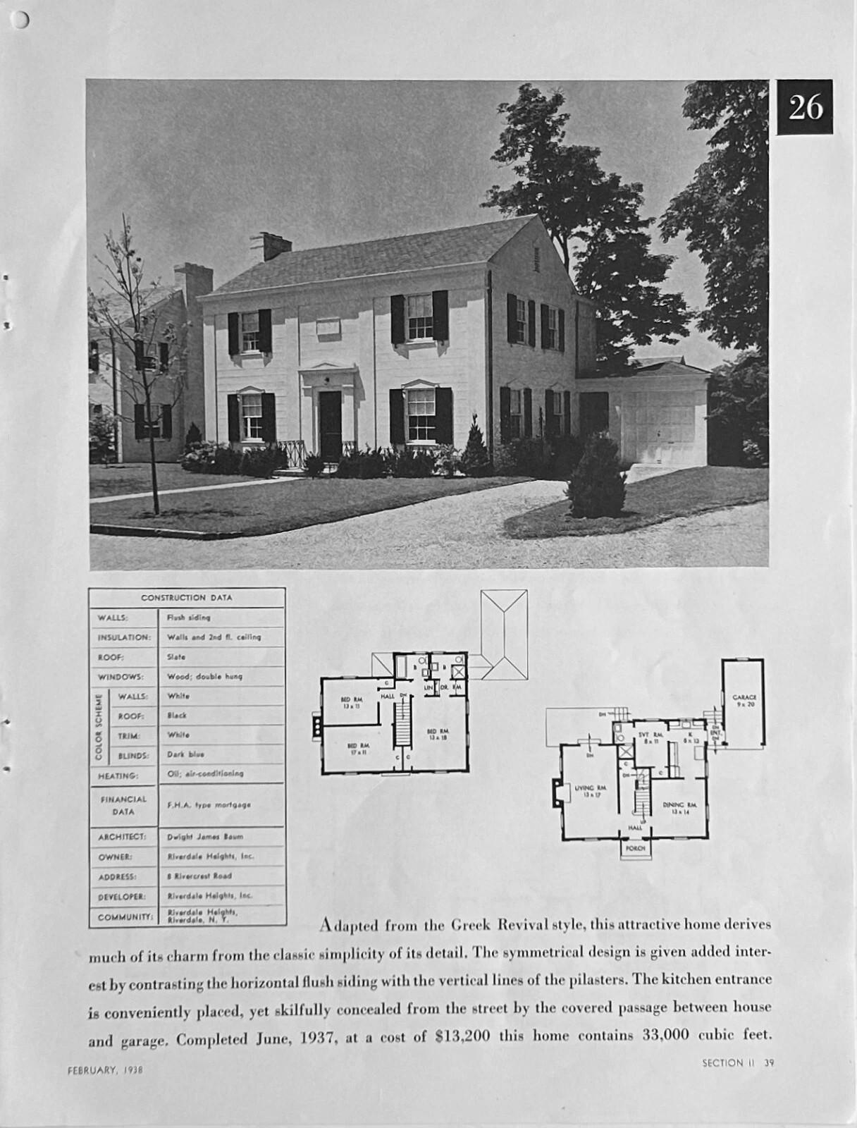 from 1938, an Architectural listing of a Riverdale Heights home.